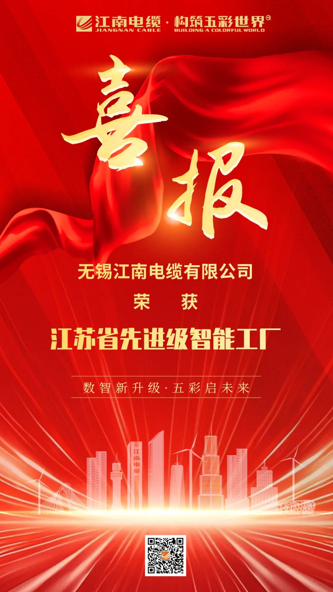 【喜報(bào)】江南電纜榮獲江蘇省先進(jìn)級智能工廠