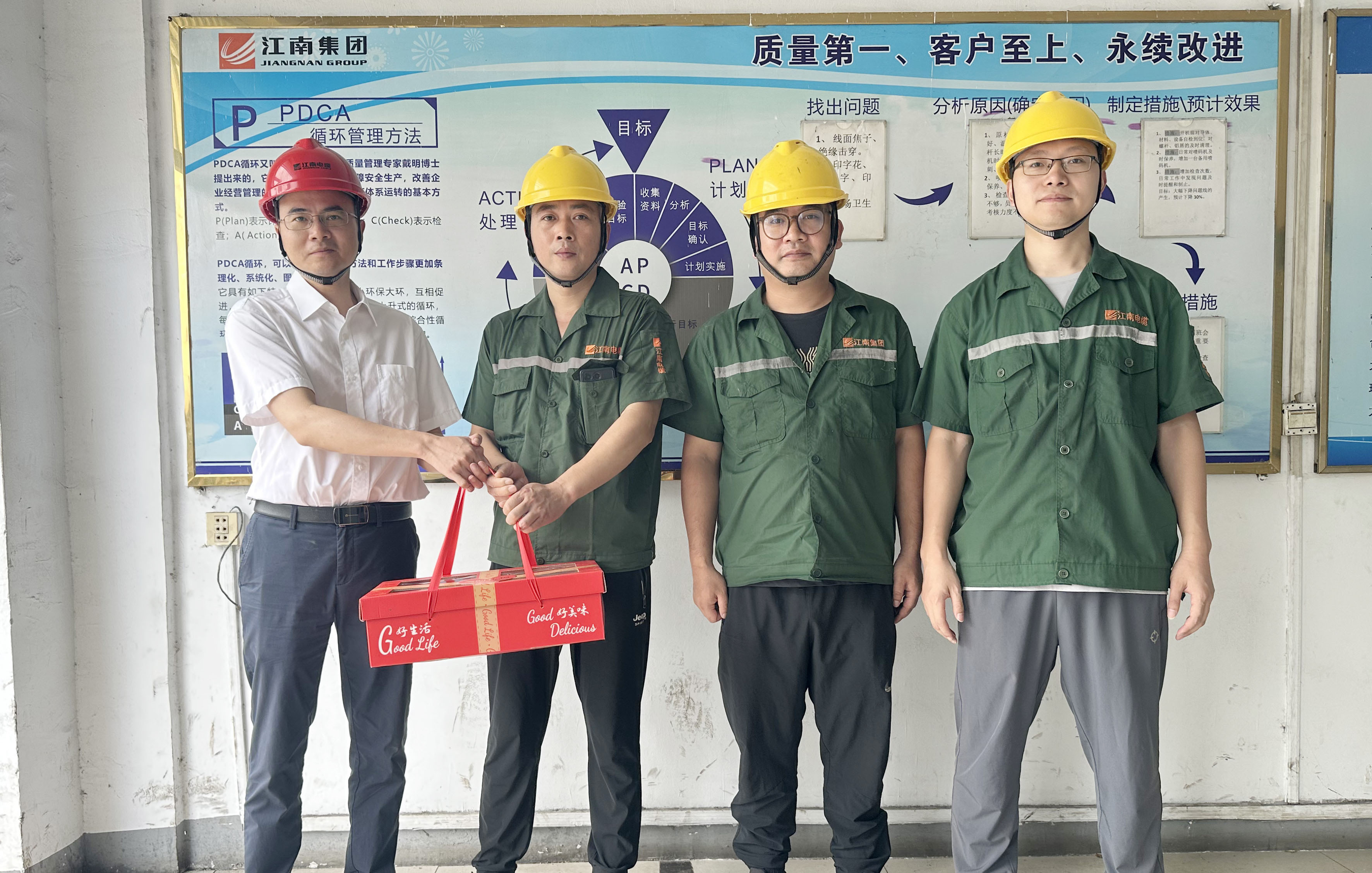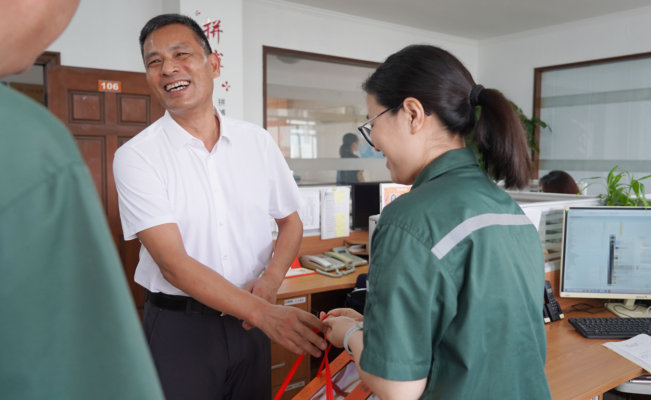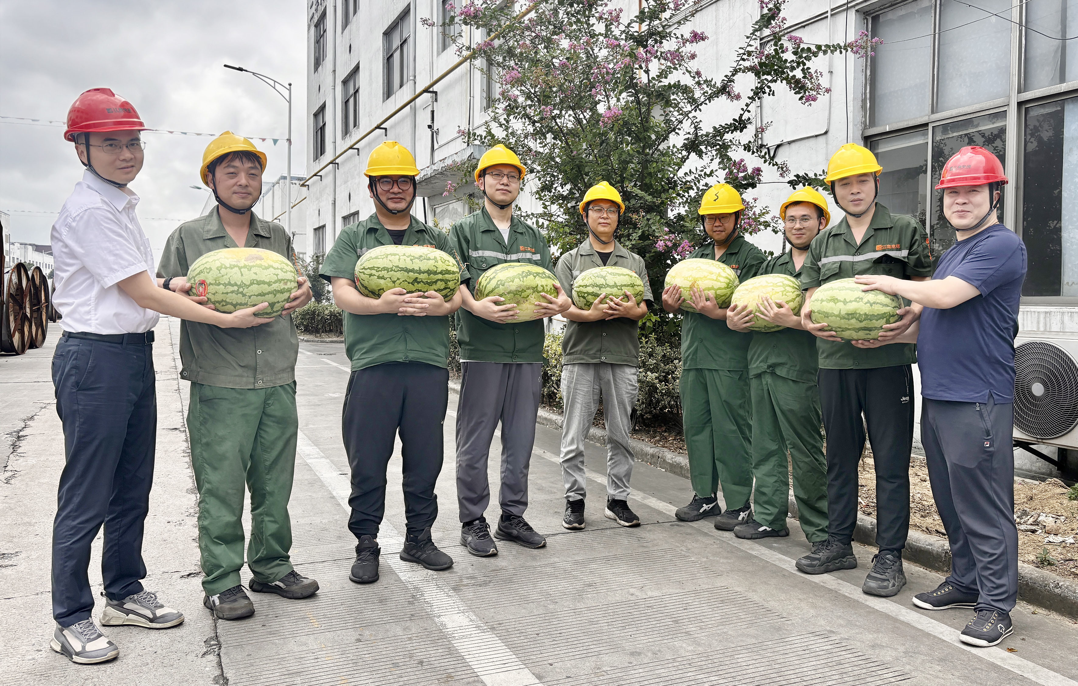 夏日炎炎,暑氣蒸騰。為切實做好高溫時節(jié)安全生產(chǎn)和員工關(guān)愛工作,近日,公司董事長儲輝、運營總經(jīng)理蔣君西帶領(lǐng)領(lǐng)導(dǎo)班子成員深入車間一線與后勤部門,開展“情系員工 夏送清涼”慰問活動,為不畏酷暑、堅守崗位、辛勤奉獻(xiàn)的員工送上關(guān)懷與問候。