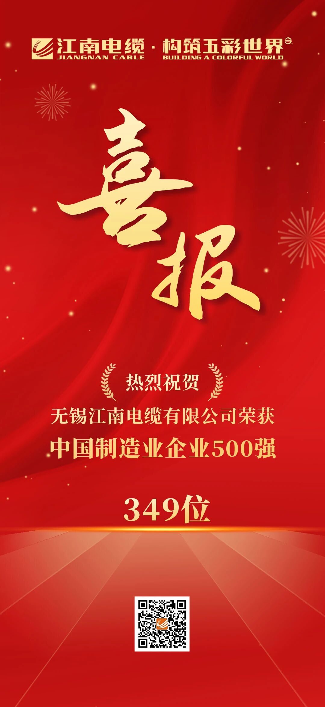 【喜報】江南電纜榮獲2025中國制造業(yè)企業(yè)500強(qiáng)!