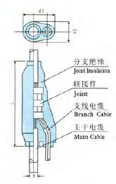 預(yù)制分支電纜的聯(lián)接體部分是采用專用PVC或合成材料制成的如右圖所示的分支電纜聯(lián)接體